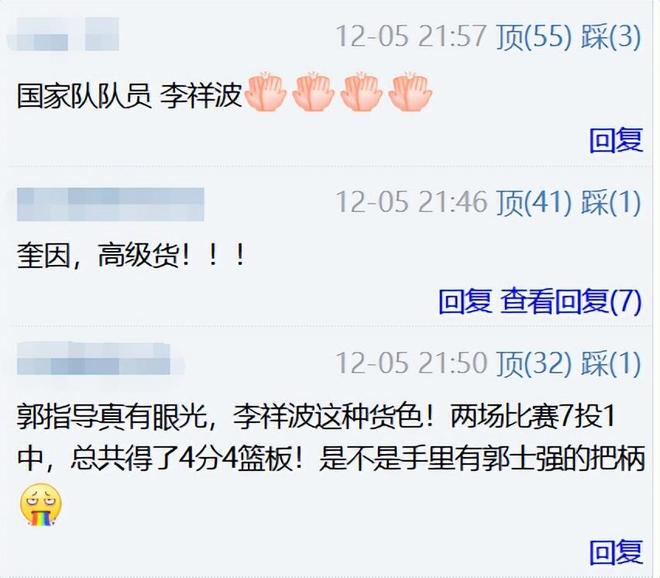 連續(xù)兩場俱樂部杯表現(xiàn)糟糕,一共只拿到4分,賽后李祥波也免不了又一次被球迷們嘲笑和質(zhì)疑,不少球迷再度隔空向李祥波發(fā)起了那個靈魂拷問——你到底是怎么進國家隊的?郭指導(dǎo)可真有眼光。
