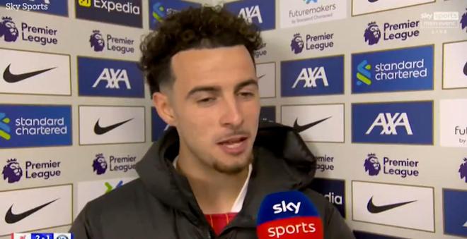 歐冠利物浦1-4不不敵埃因霍溫賽后,利物浦球員柯蒂斯-瓊斯接受了CBS的采訪。